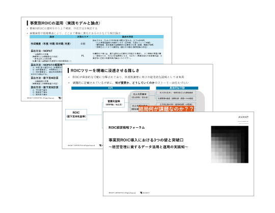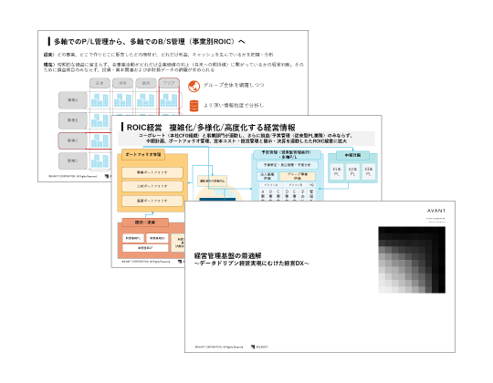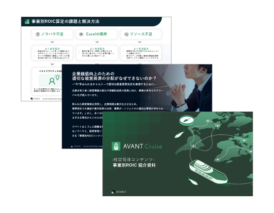 製品資料 AVANT Cruise 事業別ROICコンテンツ紹介資料 「AVANT Cruise 事業別ROICコンテンツ」の紹介資料を無料でダウンロードいただけます。 詳細はこちら