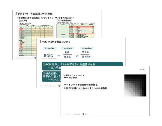 講演資料 文藝春秋カンファレンス ROIC経営第6弾 アバント講演資料 2025年7月8日(火)、株式会社文藝春秋が主催する「文藝春秋カンファレンス ROIC経営第6弾 ~「収益性」の高い、「将来性」のある事業へのリソース最適配分の実現~」にて、アバントが講演した際の資料を無料ダウンロードいただけます。 詳細はこちら