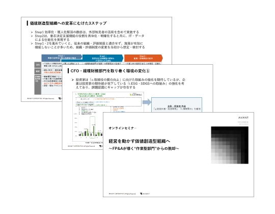 講演資料 CFO X !! 2025 アバント講演資料 2025年9月9日~9月11日に開催された一般社団法人日本CFO協会が主催する「CFO X !! 2025」にて、アバントが講演した際の資料を無料ダウンロードいただけます。 詳細はこちら