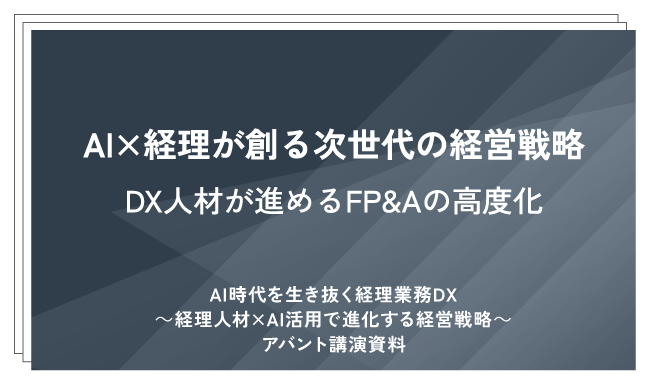 講演資料 AI×経理が創る次世代の経営戦略~DX人材が進めるFP&Aの高度化~ アバント講演資料「AI時代を生き抜く経理業務DX~経理人材×AI活用で進化する経営戦略~」を無料ダウンロードいただけます。 詳細はこちら