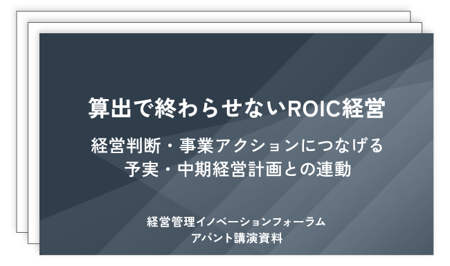 講演資料 算出で終わらせないROIC経営~経営判断・事業アクションにつなげる予実・中期経営計画との連動~ アバント講演資料「算出で終わらせないROIC経営」を無料ダウンロードいただけます。 詳細はこちら