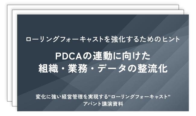 講演資料 凝り固まった経営管理業務、少しほぐしませんか?~PDCAの連動に向けた組織・業務・データの整流化~ アバント講演資料「PDCAの連動に向けた組織・業務・データの整流化」を無料ダウンロードいただけます。 詳細はこちら